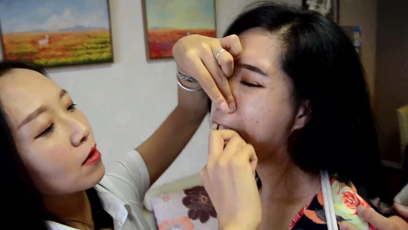 王仟雅在单位总和文清作对,感到不满的文清带着自己表弟到王仟雅家对其捆堵折磨,文清当着王仟雅的面脱掉自己腿上穿的一条肉色连裤丝袜,把这条原味脏裤袜一点点塞入王仟雅口中,令其苦不堪言。