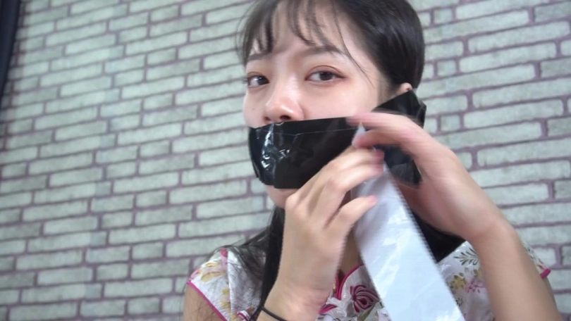 劫匪分别把一双臭烘烘的黑色锦纶丝袜和一双原味肉色连裤丝袜塞入珊珊和其男友口中,并在二人嘴外缠绕多圈黑色胶布和黑色弹力自粘绷带缠绕封严实。