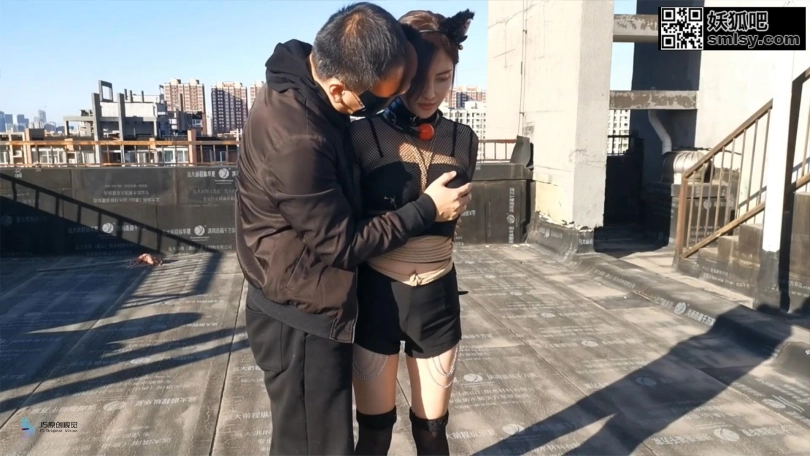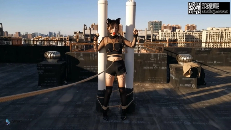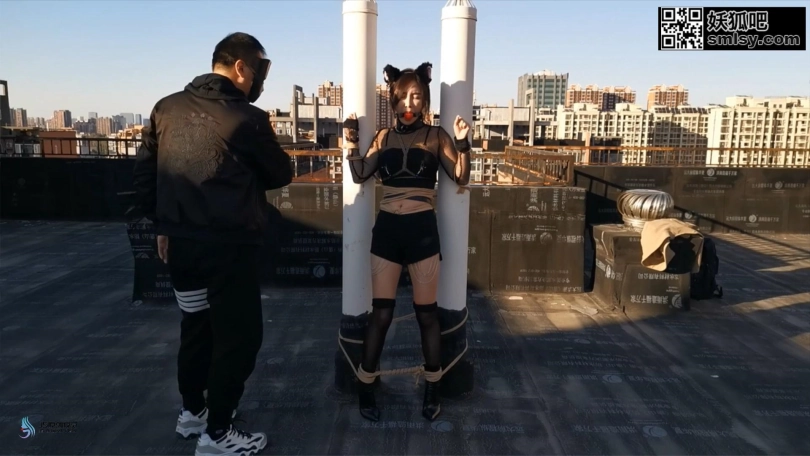 主人很喜欢猫奴送的礼物,想带她出去玩玩,于是让猫奴穿上衣服,带她到天台上,固定股绳调戏,玩好了之后待会家里,床上大字缚强制。