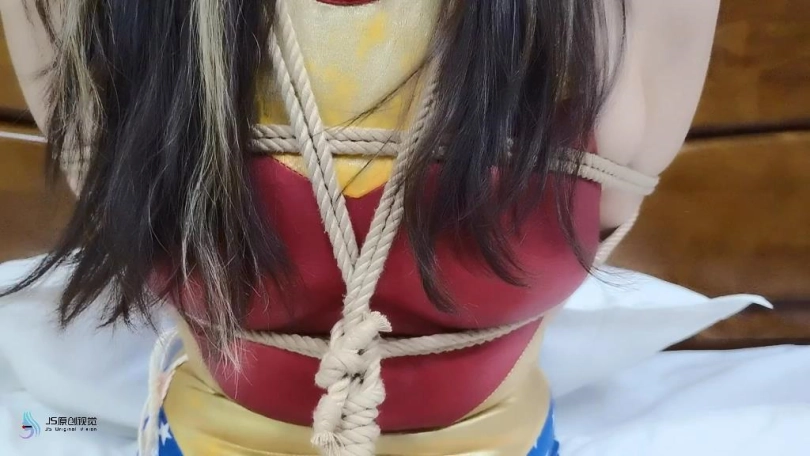 神奇女侠被团缚绑在床上,嘴巴被超大口球堵着,眼睛也被蒙上。反派开始折磨她,用一个快乐棒不断刺激着她。很快神奇女侠就达到了GC并屈服。(视频里艾菲被刺激GC了两次,大家自己找吧)