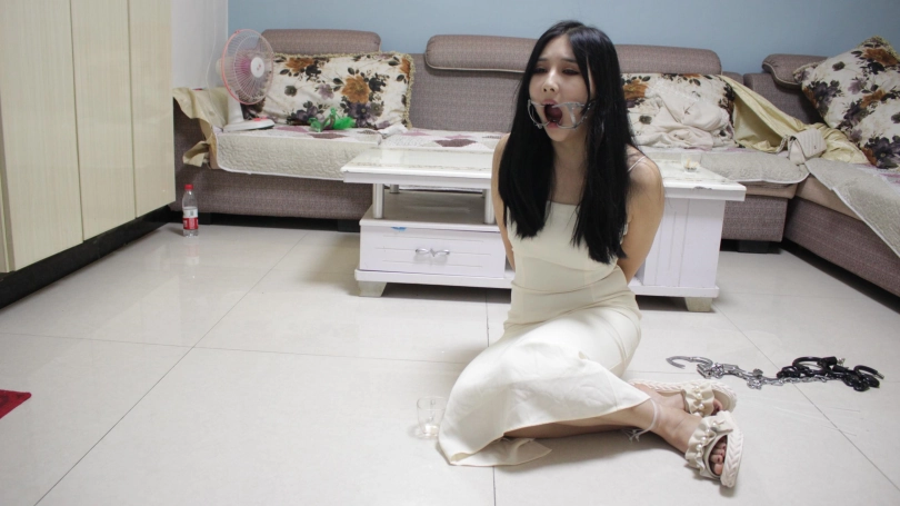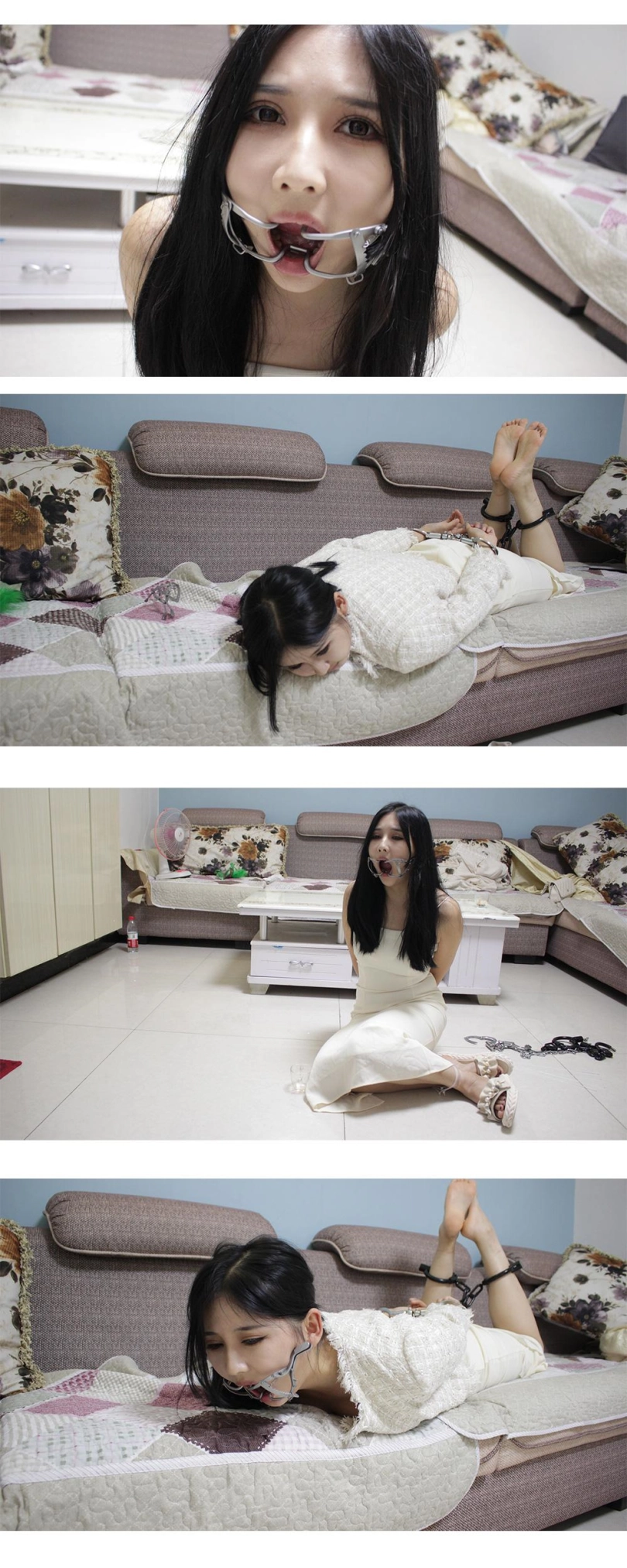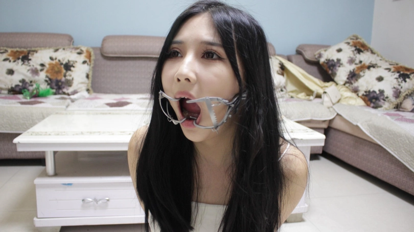 【子衿】小雅-镣铐驷马 扎带 开口器,开口器调到最大,模特最后谈感受说带上了嘴都动不了,只有任由口水不停的流