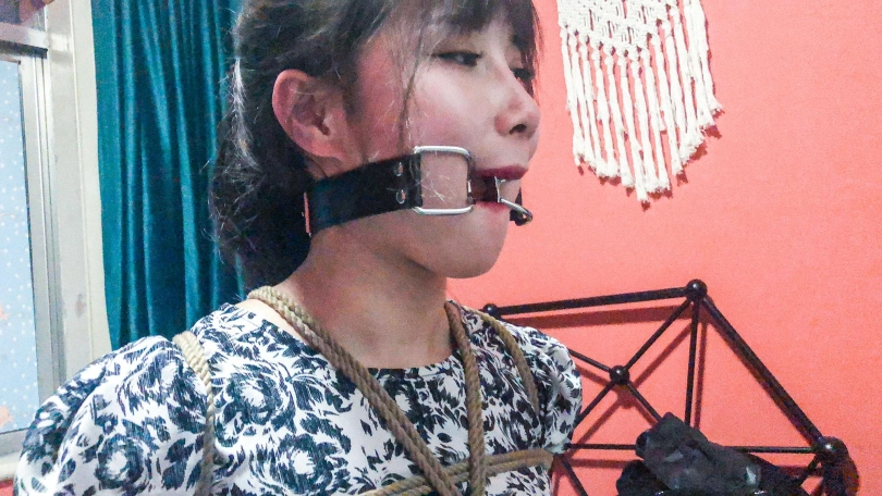 【子衿】新妹子舞蹈系女生柔韧性和耐力就是好,环形口枷带着看着好乖