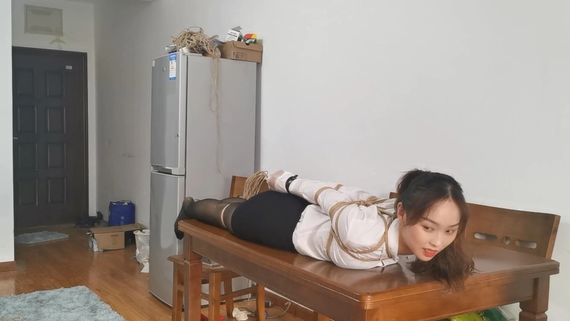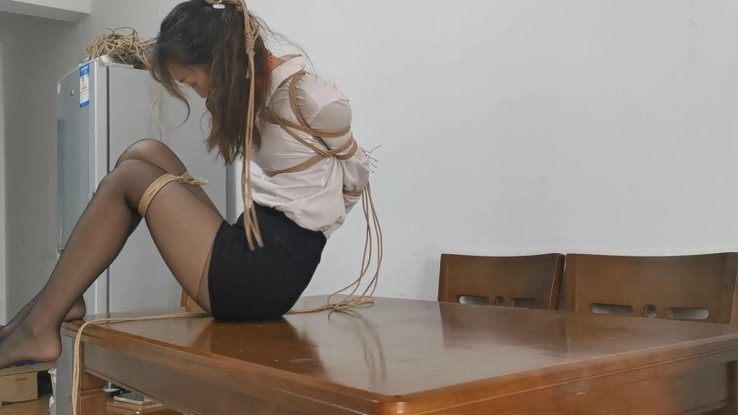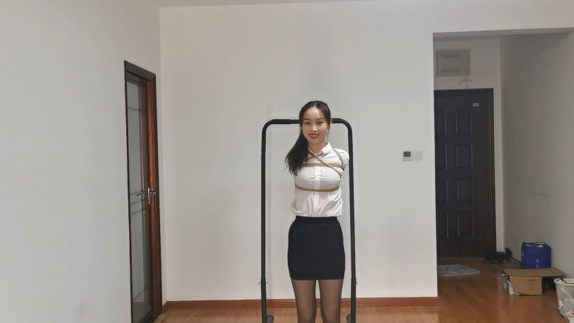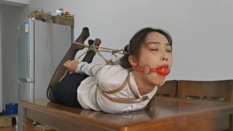 雨琪作为舞蹈生,身材和颜值都是顶级的,柔韧性更是好的惊人,绑一个多小时的欧式直臂手都不会麻。这次用了相当严厉的束缚,把她极限直臂驷马捆绑起来,双手用丝袜包住再用胶带固定手腕,大口球堵嘴再用绳子向后绑住头发。结果在这种严厉的捆绑下雨琪居然突破重重困难挣脱了腿上的绳子,柔韧性好的令人羡慕。