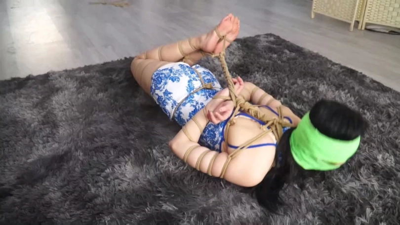 为了惩罚汪婷想跑,夏炎将其捆成驷马放置在沙发前地上,而后拿着一条崭新的紫色连裤丝袜在汪婷眼前晃晃说,看你家里值钱东西还挺多的,送你一双新袜子吧,不过你这手绑着也没法拿,我就放你嘴里吧,哈哈哈!
