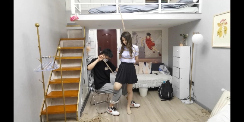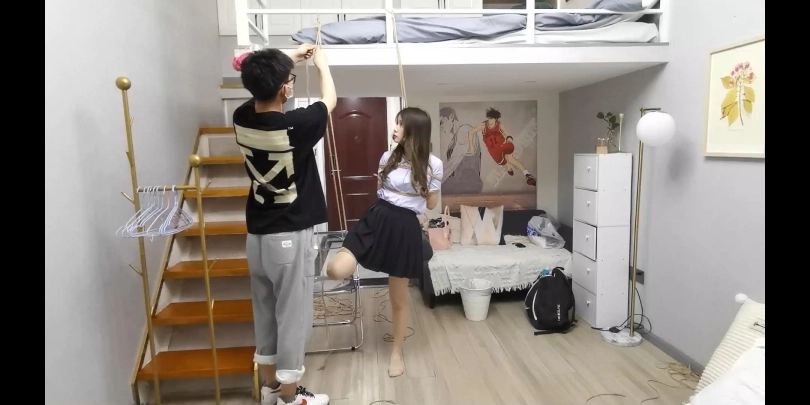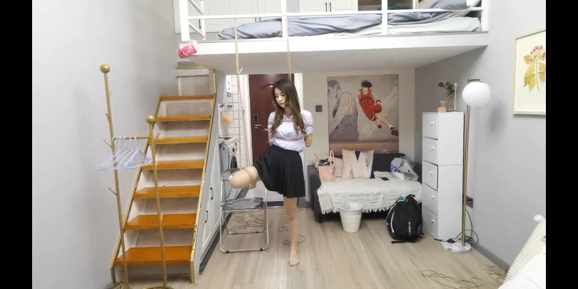 片足单脚吊,大家可以欣赏妹子被吊起后努力维持平衡的样子~此外还有妹子的腿部和足部特写。