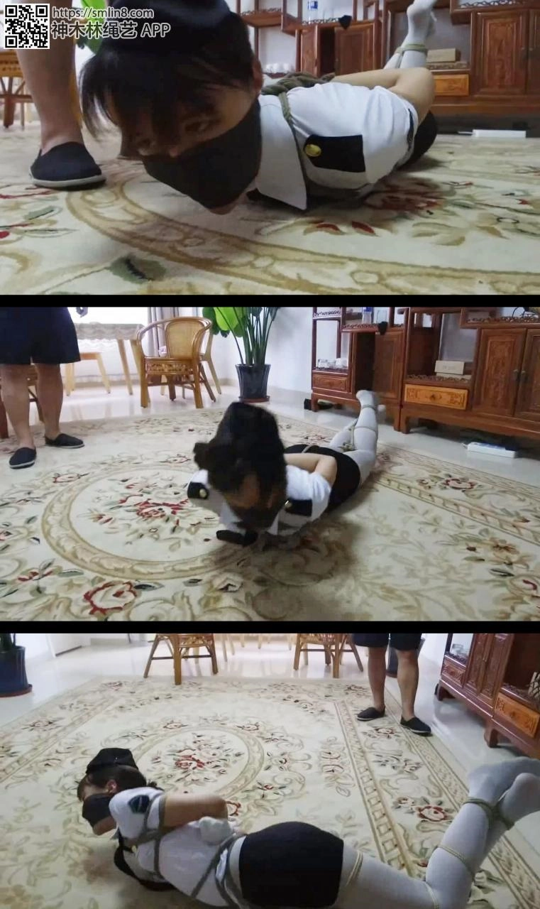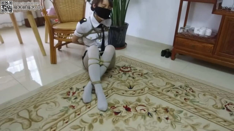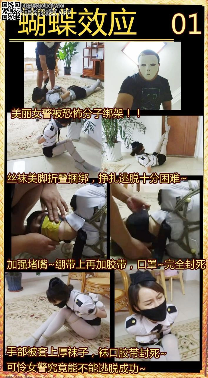 【逍遥】《蝴蝶效应01》美丽警服美女~灰丝美腿交错捆绑,手被厚袜子包裹胶带封口,绷带,胶带,口罩多层堵嘴