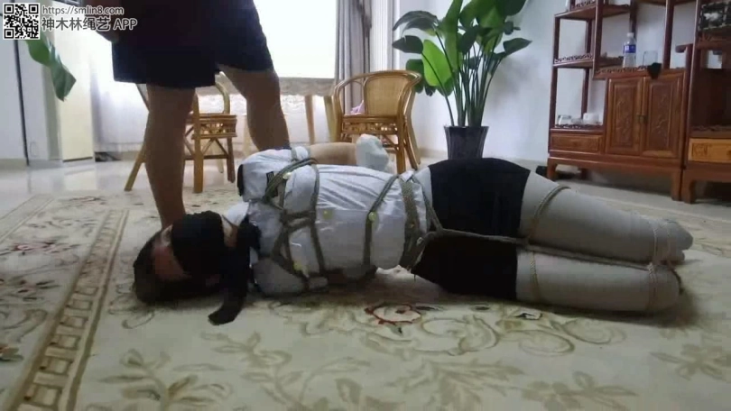 更要命的是匪徒还是把她的灰丝小脚交错捆绑的,她根本站立不起来。