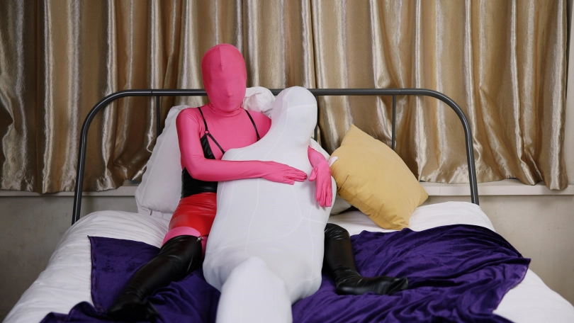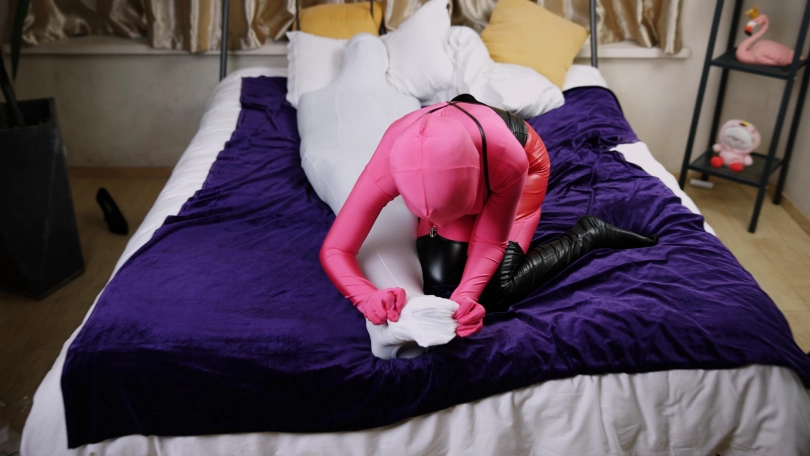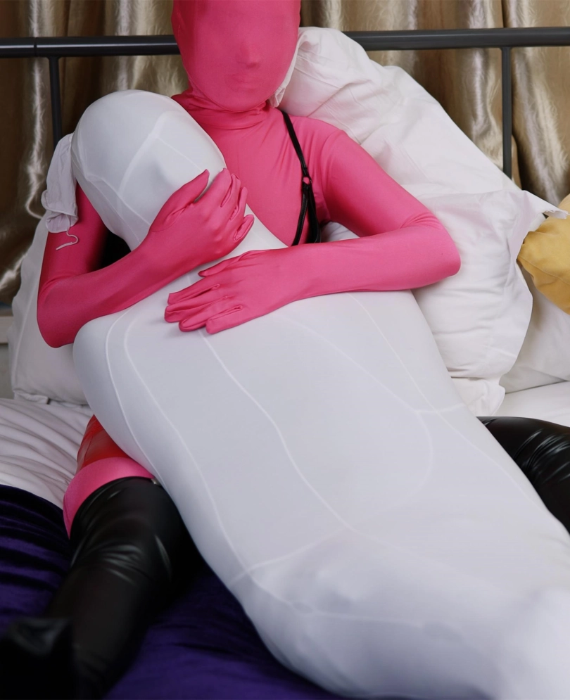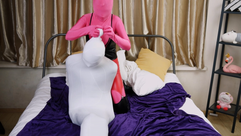 【红鲤鱼】一条白色连裤袜+四条白色丝袜睡袋+一条白色912针丝袜睡袋【女绑男带过程】