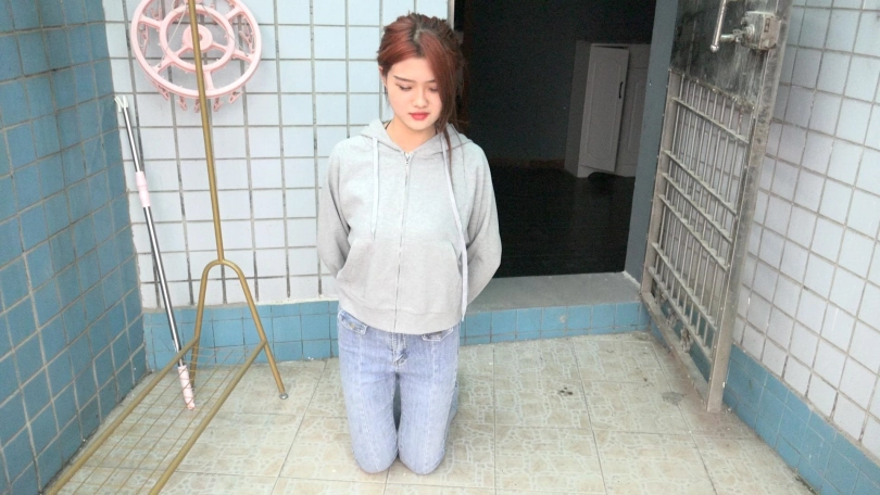 场景2:娜娜跪在地上不停哭泣,乞求男子放了她,可是他怎么会同意这好不容易才到手的“猎物”呢。只见他坐在那里,用棍子挑起娜娜的下巴,说:“在这里,你只有听话才能活命,你要是不想活命,我现在就成全你。”