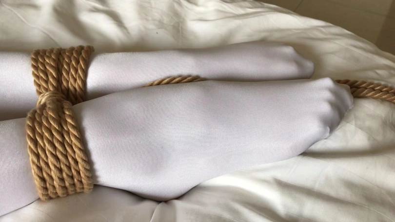 2、手脚被绑在沙发两端,无法动弹,面对我的进攻根本解决不了。小羽毛不断的蹭她的敏感带,挑起欲望。