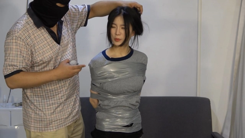 穿着牛仔短裤的小狐狸被绳子加胶带紧紧捆绑全身,她试图用自己的肉丝美足把自己装在包里的手机够出来,以便打电话求救逃脱,下场却是驷马惩罚,双手合一被胶带紧紧抱住。