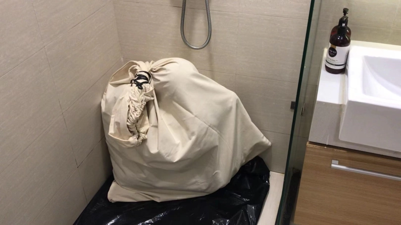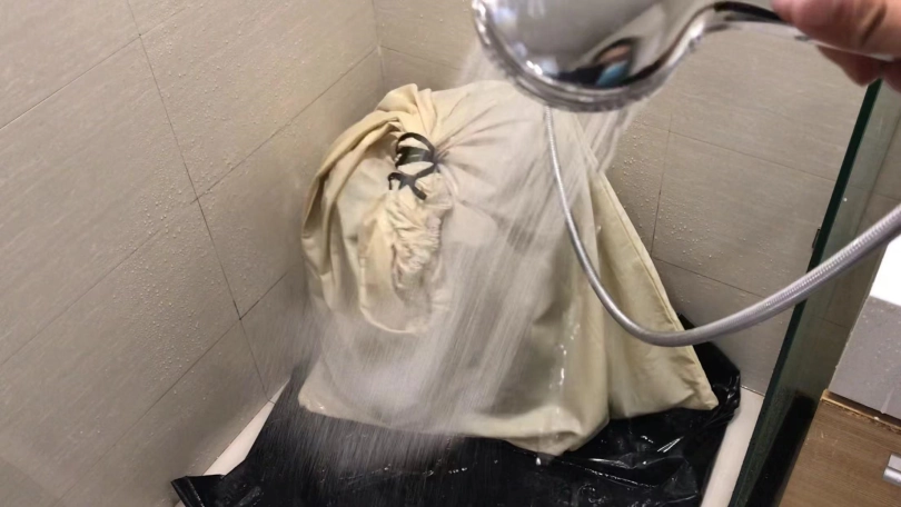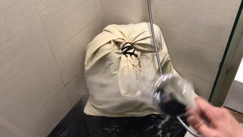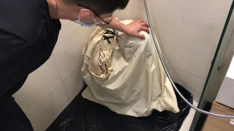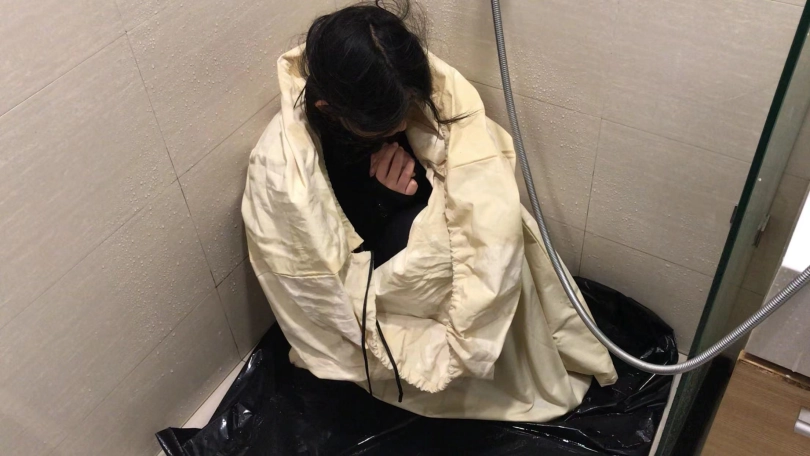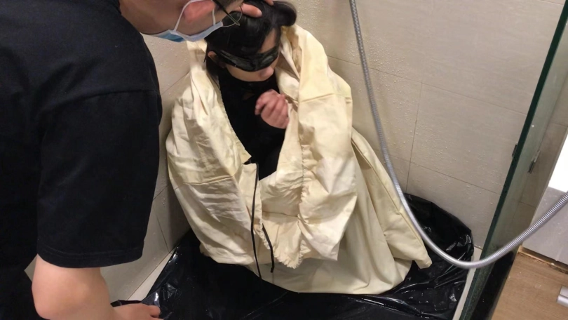 3、把小周装进布袋,然后放到浴室里,用喷头冲水,小周的声音越来越崩溃,因为水声,所以请把声音调大仔细享用~最后都快给浇哭了,因为是坐在地上,所以内裤已经全部湿透,拍摄结束后小周是真空穿个丝袜离开的。这个感觉很特别。