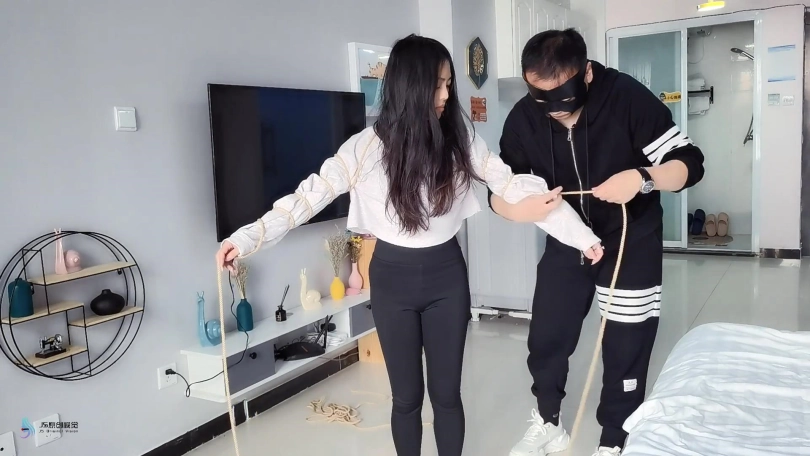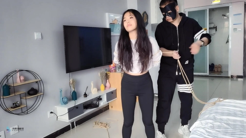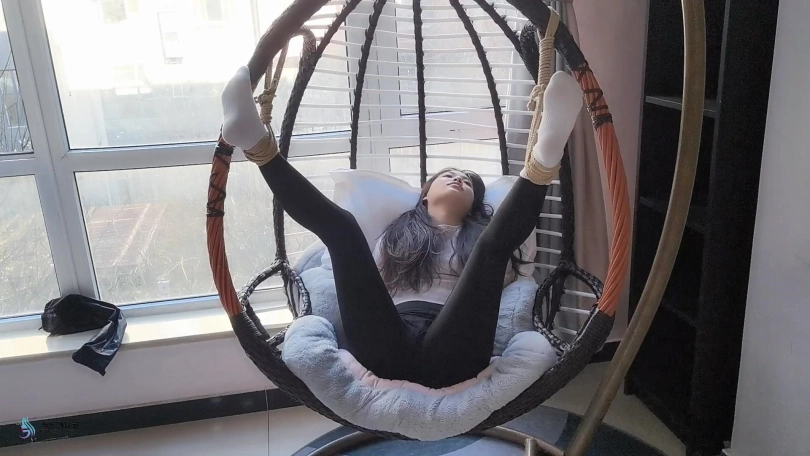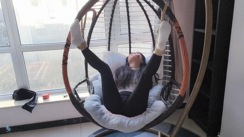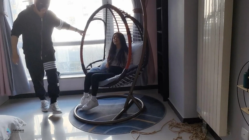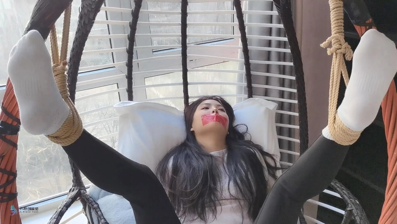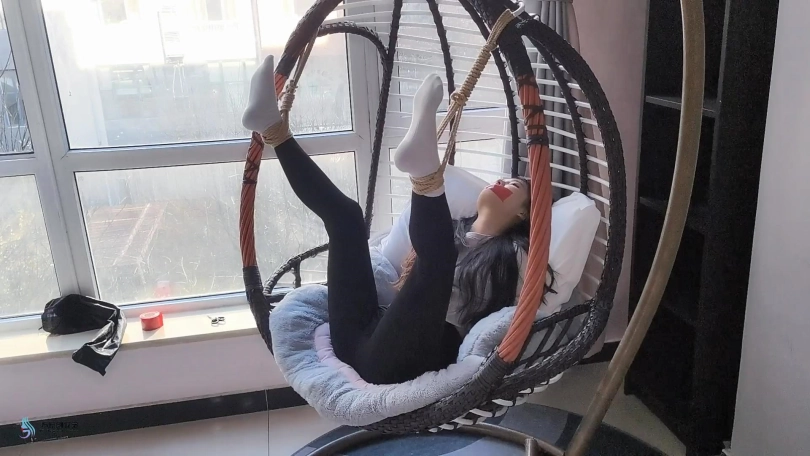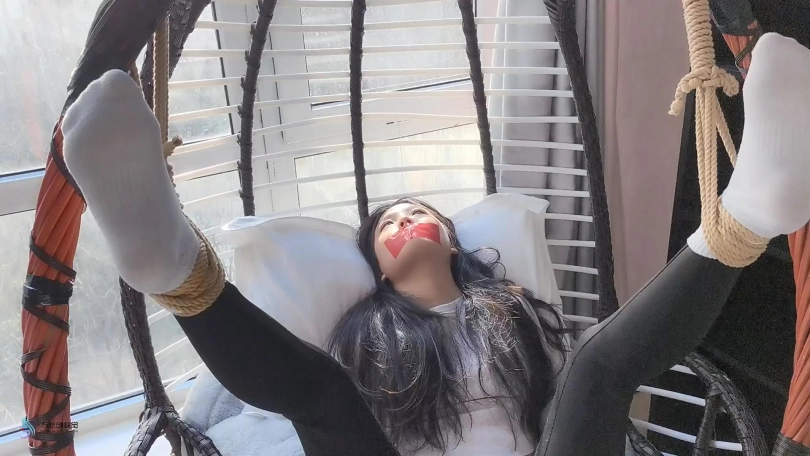 这小妮子是个意籍华人。不知大家怎么看,反正我第一次见到她,就觉得有点像舒淇。这次把她五花大绑,双脚掉在摇椅上,嘴巴用胶带封住。骗她说我要出去,半天才能回来。把这丫头吓的不停的“呜呜”表示抗议-抗议无效。。。