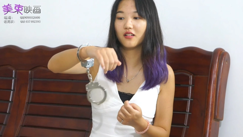 【美束映画】妹纸第一次戴手铐,脚也拷上手铐,艰难踱步
