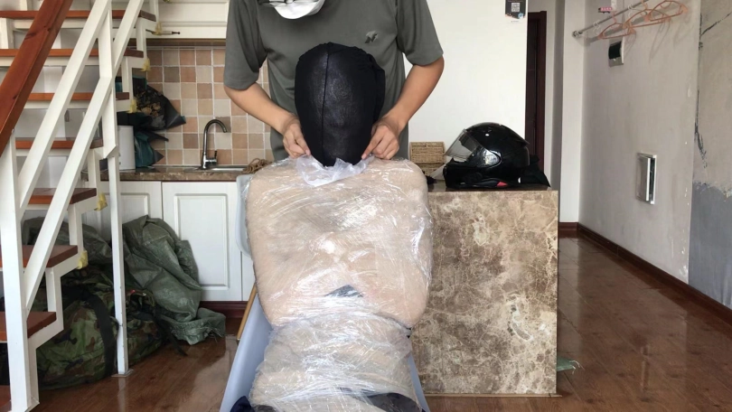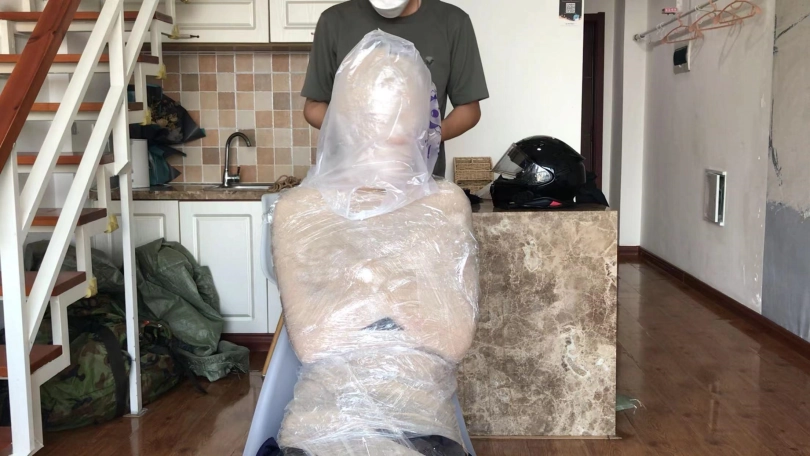 【高校联盟】99年研究生小周 绷带保鲜膜包裹,捂嘴,塑料袋套头,呼控幻想