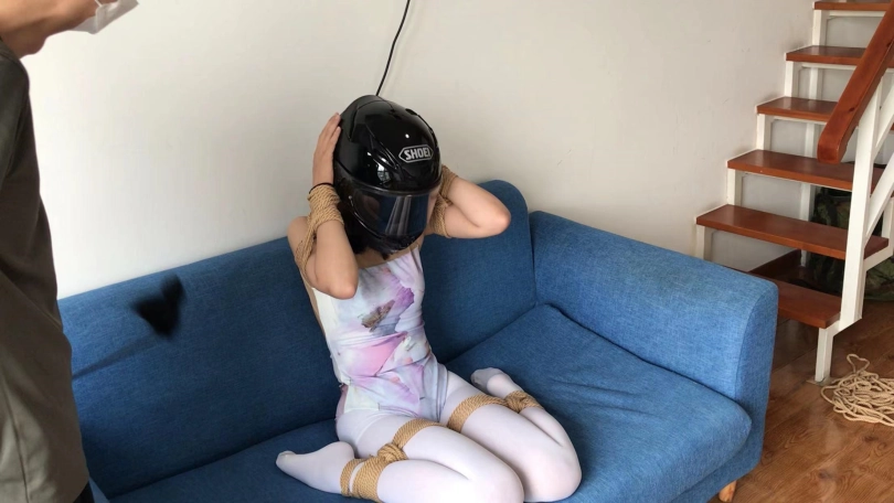 【高校联盟】99年研究生小周 舞蹈服白丝,头套头盔装袋