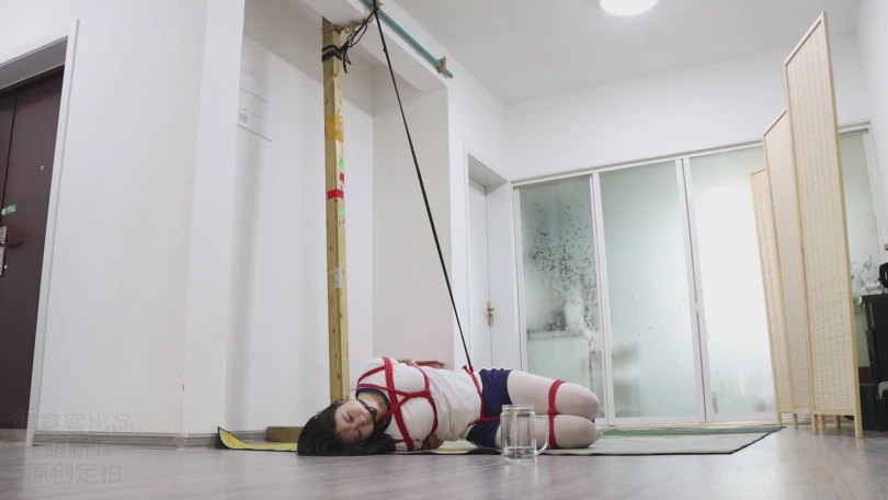 被红绳紧缚成一团,在地毯上拼命的挣扎