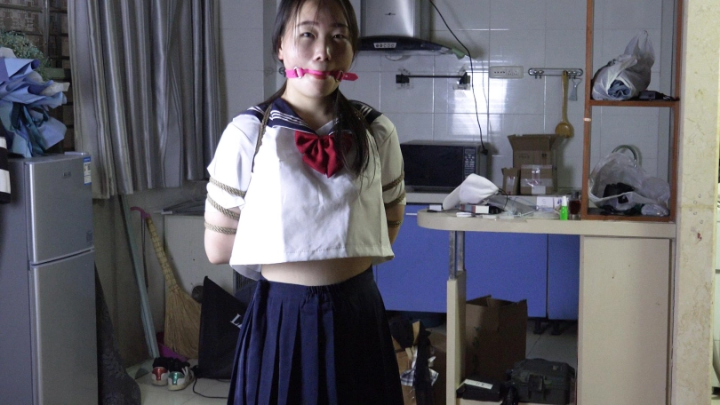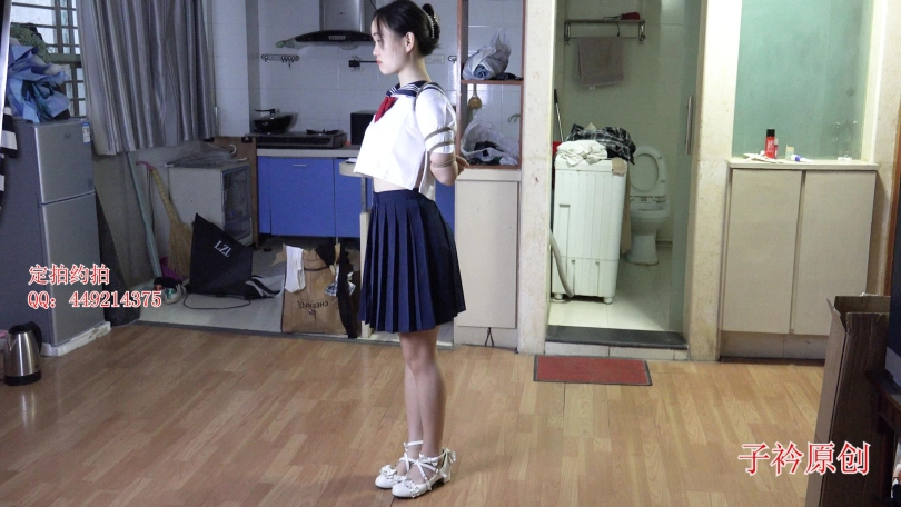 【子衿】新模试镜-水手服新妹子体验最紧的五花紧缚口球单独放置在房间