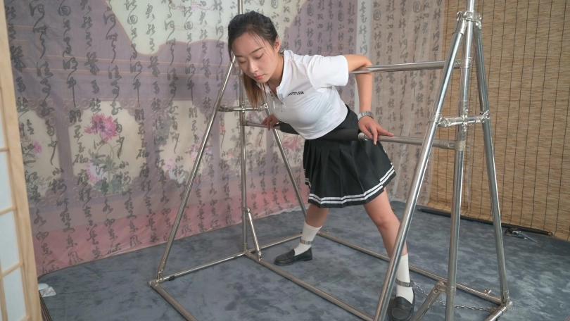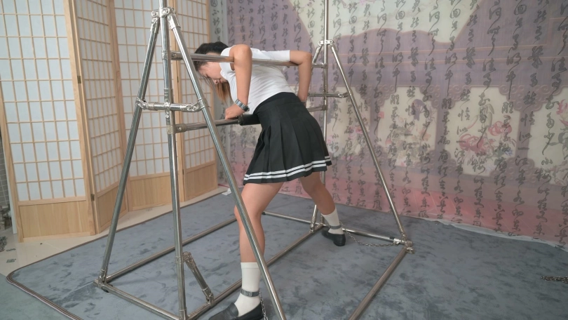 【撒琅制造】萱萱学生装铁架强制弯腰固定TK打屁股