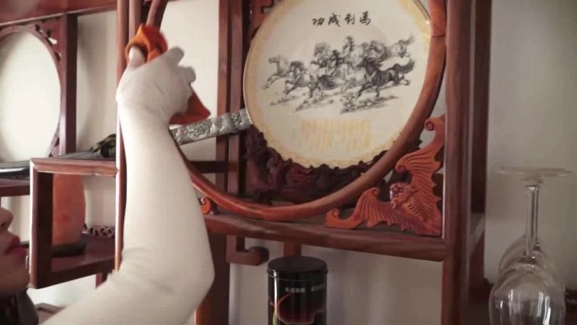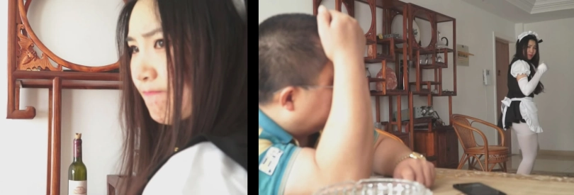 3分钟后,美女终于求饶了,不住的点头,然后男人把抹布塞会美女手里,美女开始清理房间。