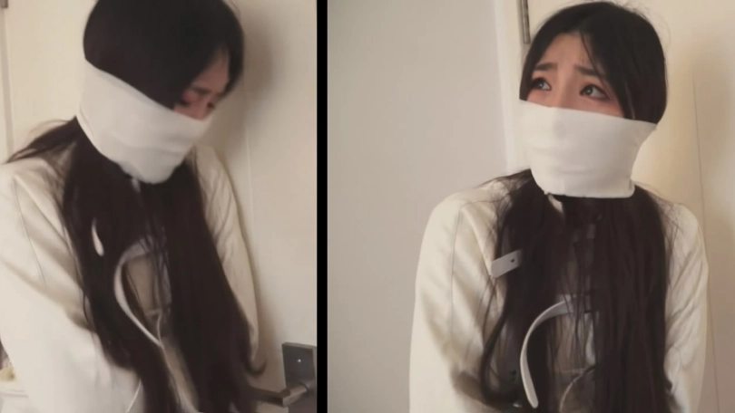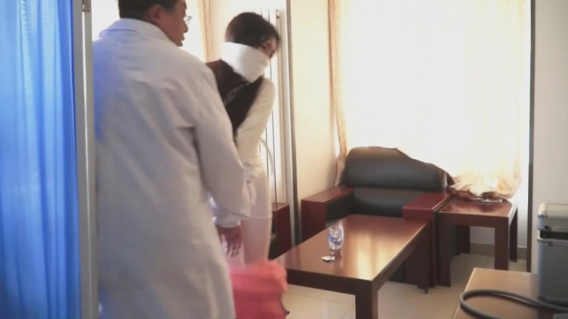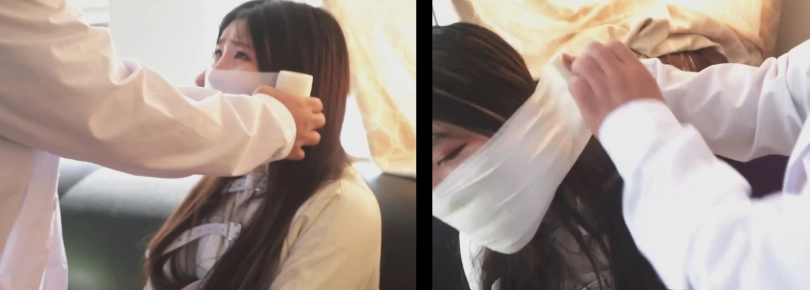 医生用白色胶带把她的嘴巴封死,美女绝望的摇头,但完全没有用。