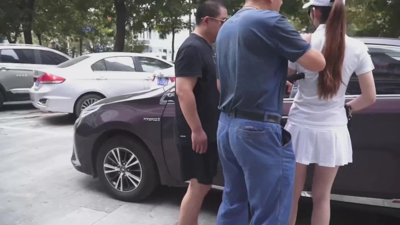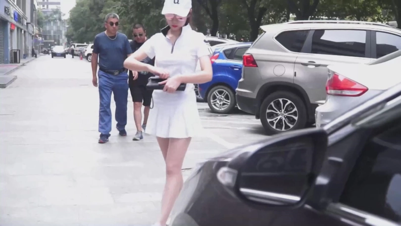 白富美女孩(李雨潼饰)走到自己停车的地方,打开了车门。