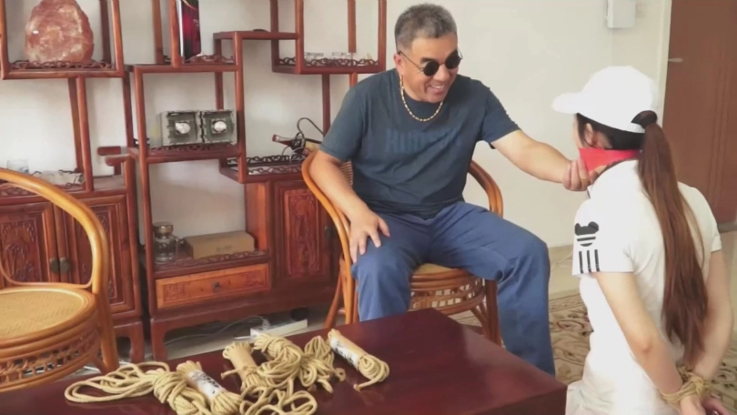 麻三抓住女孩的 双臂拧到了背后,掏出早就准备好的麻绳把女孩结实的 捆了 起来。前面老金说道,麻三,