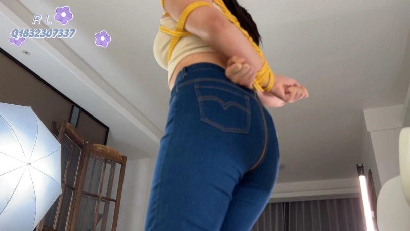 模特进行捆绑,后手+上半身捆绑 最后在地毯上进行驷马束缚,主要内容为束缚过程
