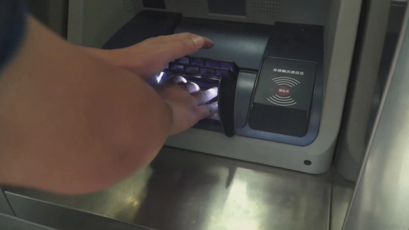 银行柜员机外,麻三带上了 口罩,走进了自助柜员机,他掏出银行卡插了进去,脸上突然露出异常开心的表情,