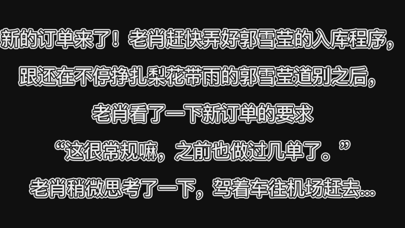 跟还在不停挣扎梨花带雨的郭雪莹道别之后,老肖看了一下新订单的要求