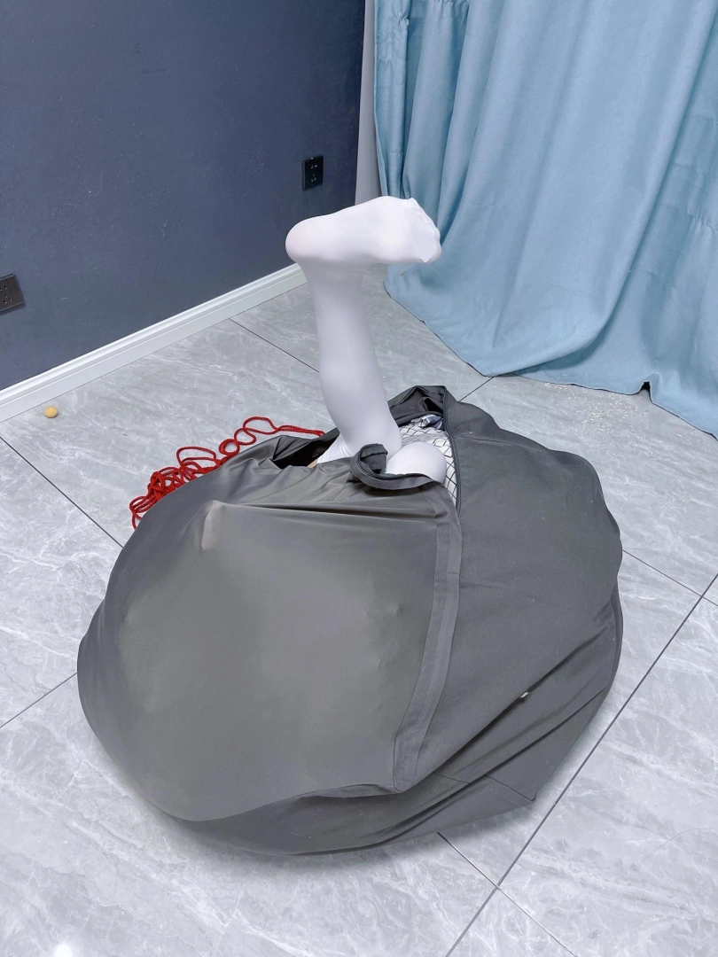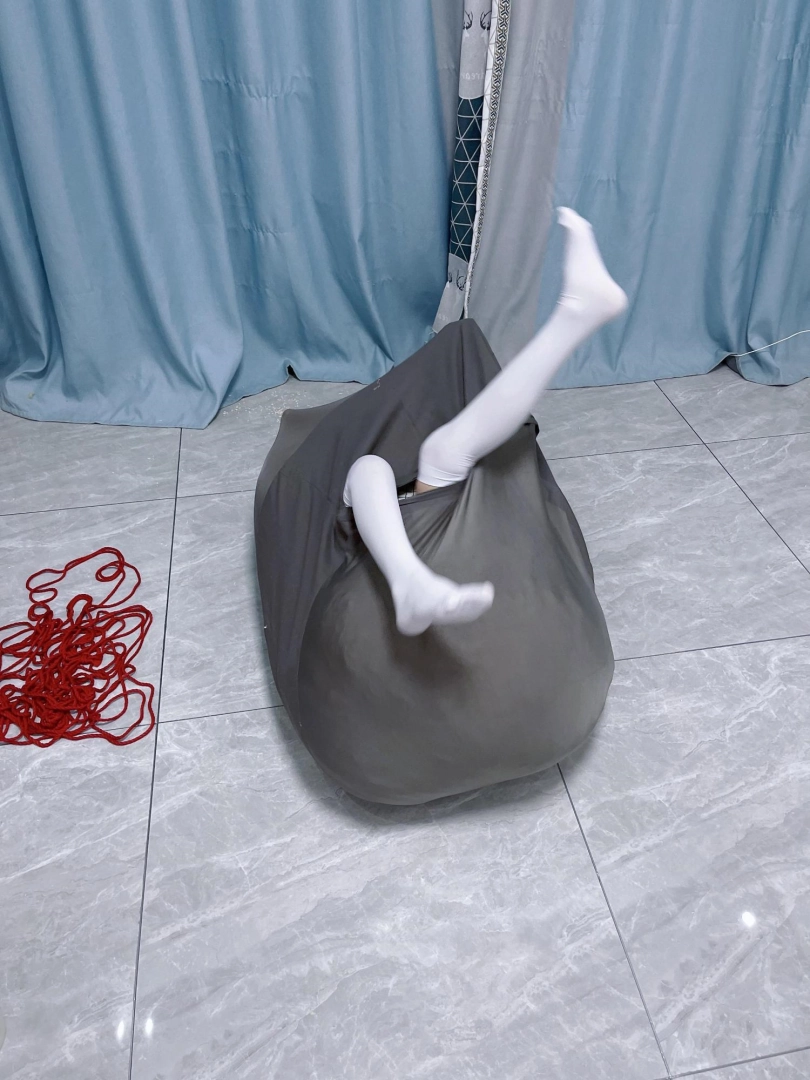 因为角度问题茶茶只能用脚先出来,白丝小脚和刚发芽的嫩芽一样,从袋子里钻出来,小脚不停踢蹬挣扎,努力蠕动着身体想钻出来。