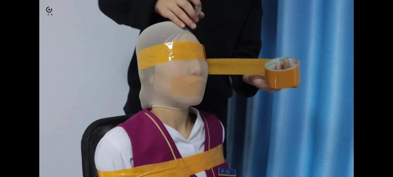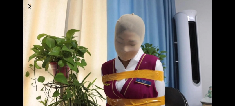 空姐危情5-两名身穿制服的空姐被歹徒用胶带捆绑在椅子上,嘴巴被封,面部被头套包裹。几分钟后,歹徒又用胶带将两人的眼睛封住,脱下两人的鞋子,放置了一颗炸弹。。。