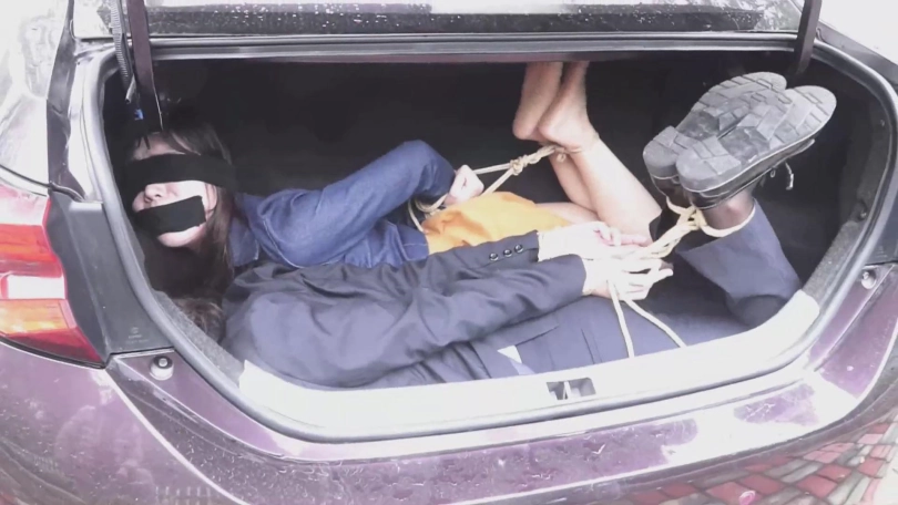男子将徐丽手脚捆绑后也抱进了后备箱,这下小张可有的作伴了。