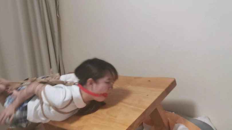 漂亮的珊珊妹子又变成一头黑发了,那就安排安排。珊珊妹子这次挣扎的挺卖力,都把桌子搞翻了,摔惨了,好在人没事,珊珊妹子算是众多模特里非常有敬业精神的了,颜值柔韧性都挺好,很不错的妹子。
