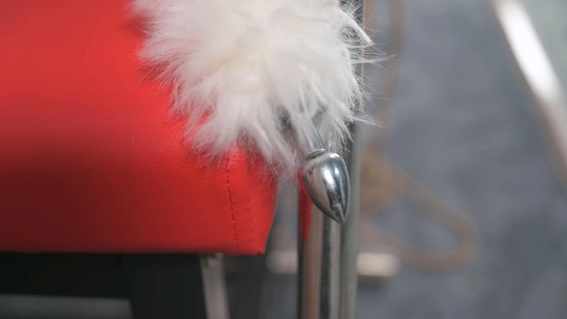 这是个看似不难受,但时间长了很让妹子难受的姿势,同时也能展现妹子高挑的身材。为了让妹子佩戴尾巴道具,也是费了不少功夫。