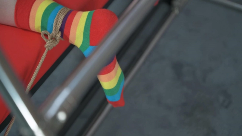 【撒琅制造】高挑妹子挺起腰杆镣铐固定--内衣、口球、棉袜、TK、尾巴解禁!