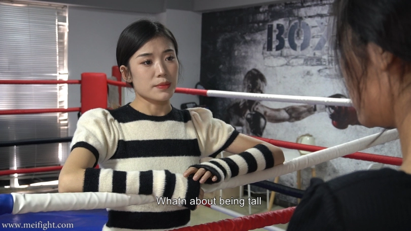 Tang saw a new girl named Zhuo come to the boxing gym. So Tang wanted to challenge her. They compared who had longer and better-looking legs. But in the end, neither of them was willing to concede to the other. So they decided to have a match on the ring...