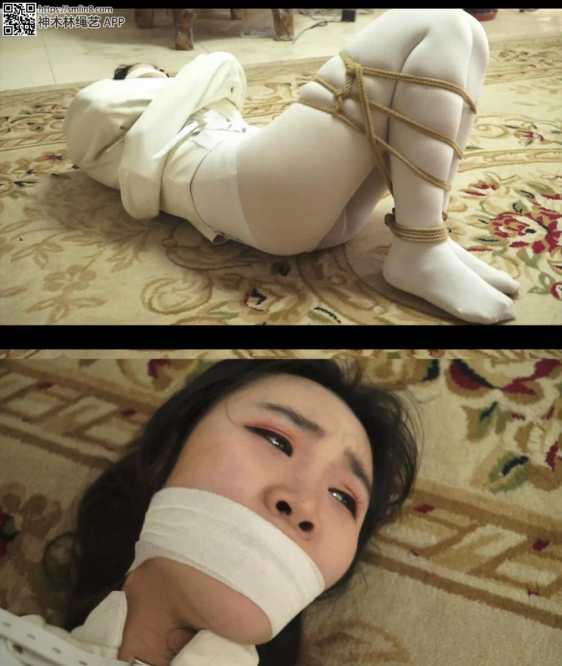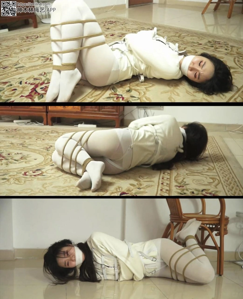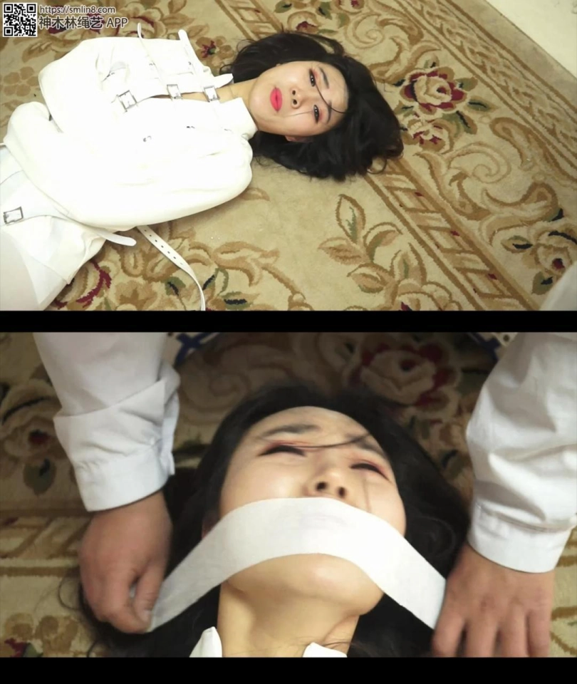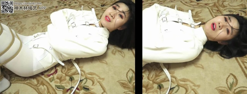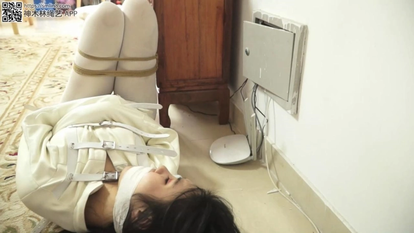 等她醒过来的时候,女警发现自己穿着精神病的拘束衣。丝袜被换了,腿还被折叠合并捆绑。