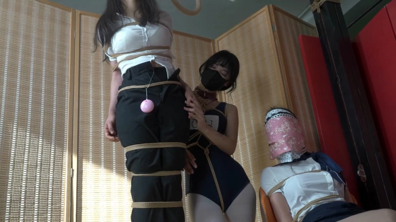 检察官小0嗷嗷接到了报警电话,得知jk月亮遭到了绑架,立刻出动。到了现场才发现这时为她们设下的圈套。二人都被迷晕,小0被高高地绑在柱子上,嗷嗷则被绑在一边的椅子上。月亮将自己脚上的两只袜子分别塞入二人的口中,并将小0堵嘴。随后撤下小0脚下的椅子,让她承受重力的折磨。绳师拿来许多棉布,先用一条将嗷嗷的嘴巴勒住,随后用另一条布蒙住她的嘴,然后再用布蒙住她的口鼻。然后摘下嗷嗷的蒙眼布,让她看清自己的形势,告诉她如果自己的脸能被蒙上更多的棉布就可以停止小0的TD,于是嗷嗷点头同意被继续猿轡。小0的TD被停下,嗷嗷的TD又被打开。最终嗷嗷的脸被层层面部彻底蒙住,2人下体的td却都被开到最高功率。最终被蒙住眼睛的二人只能忍受折磨......