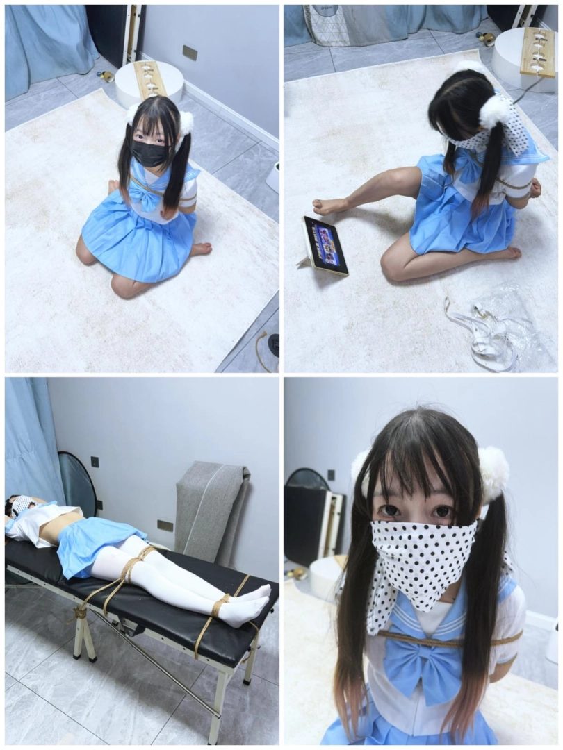 挑战部分:日式后手缚限制手臂自由,口球+8层蒙堵限制呼吸~在呼吸不畅的情况下开一局1v1随机匹配~输了要被束缚在刑床上TK全身~!