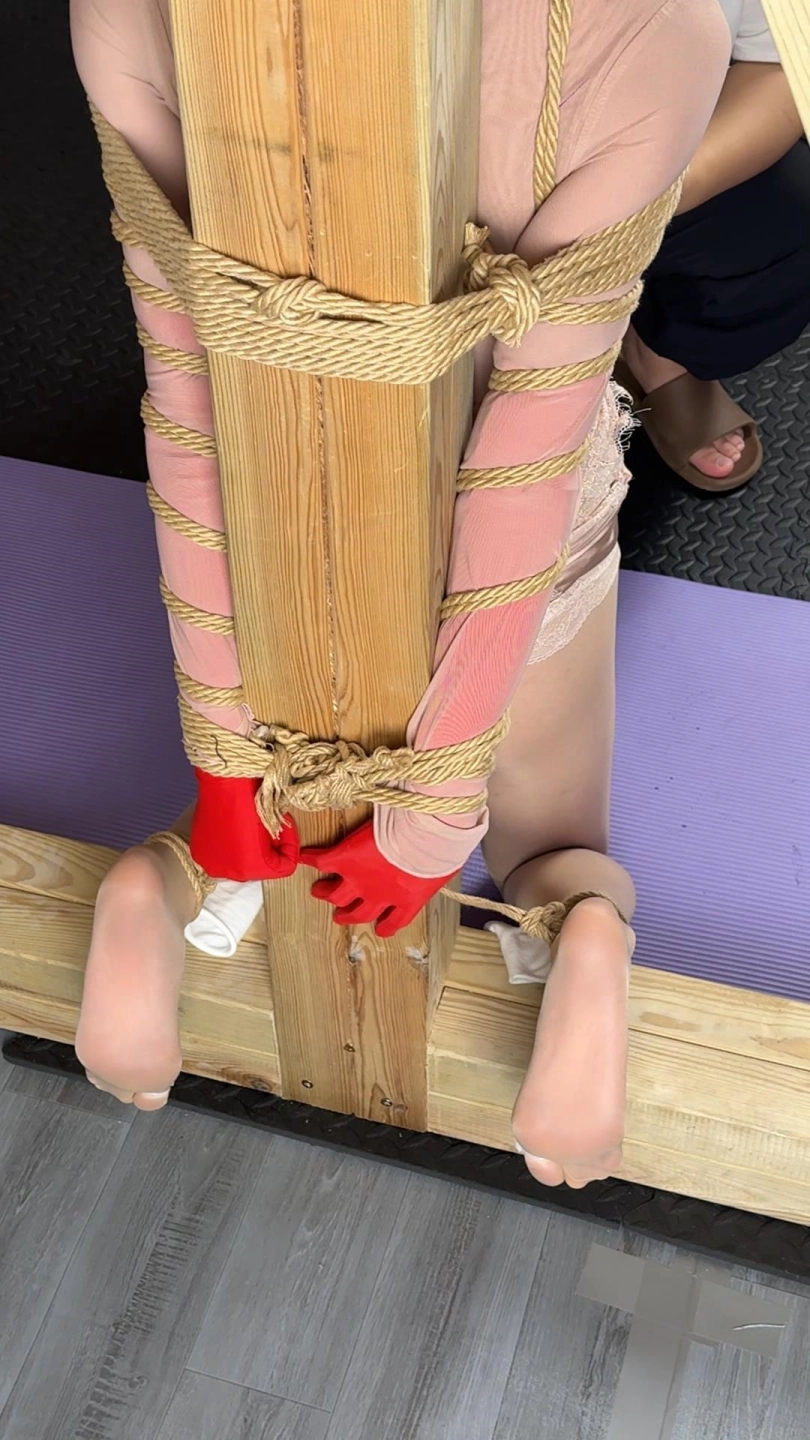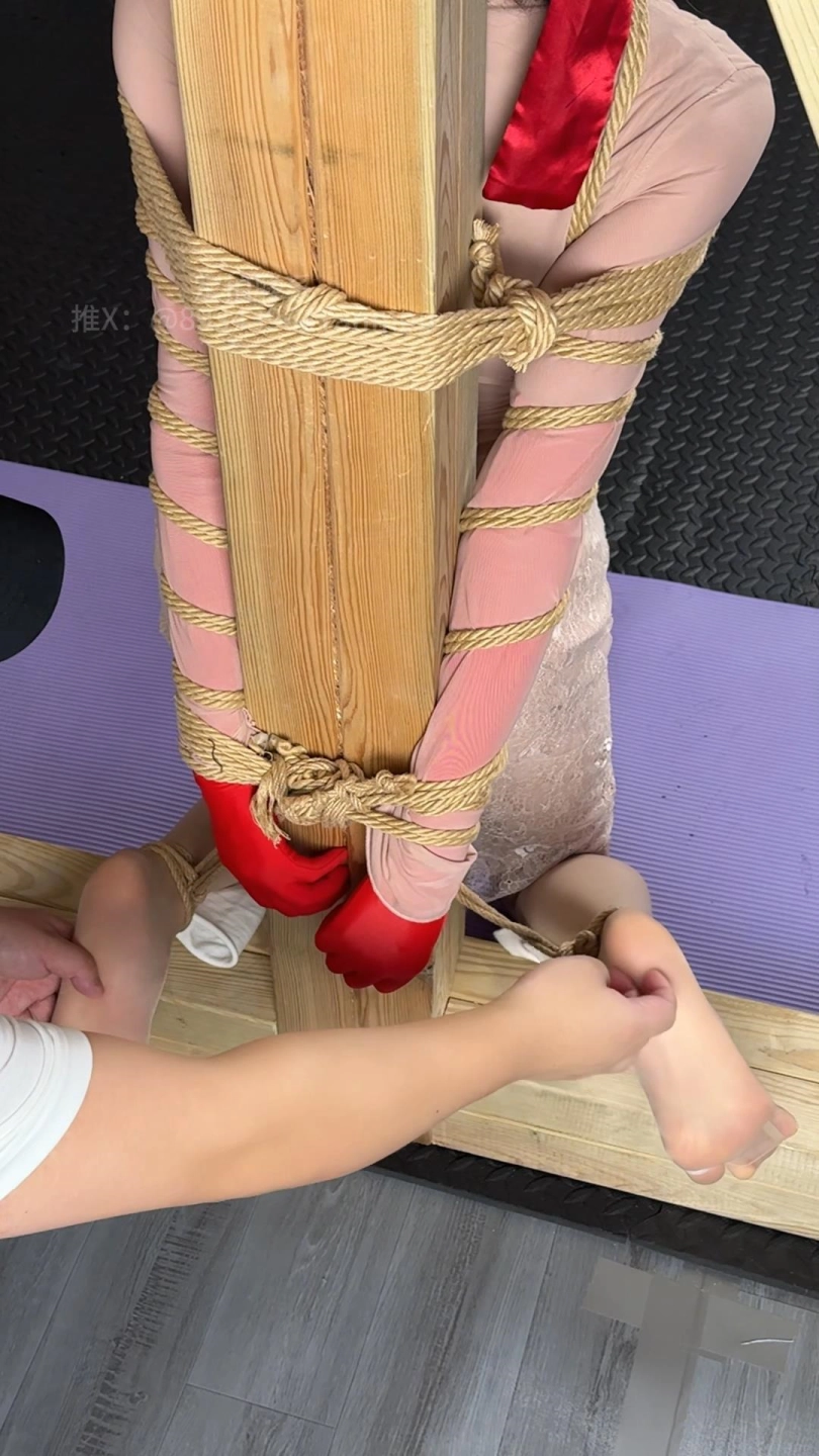 接着,抬起她的下巴端详,用手指轻刮脖子、下滑到胸部、最后下滑到下体,轻轻撩拨。 男友见欲梦表现不错把欲梦带到立柱面前跪姿绑好准备给她奖励。