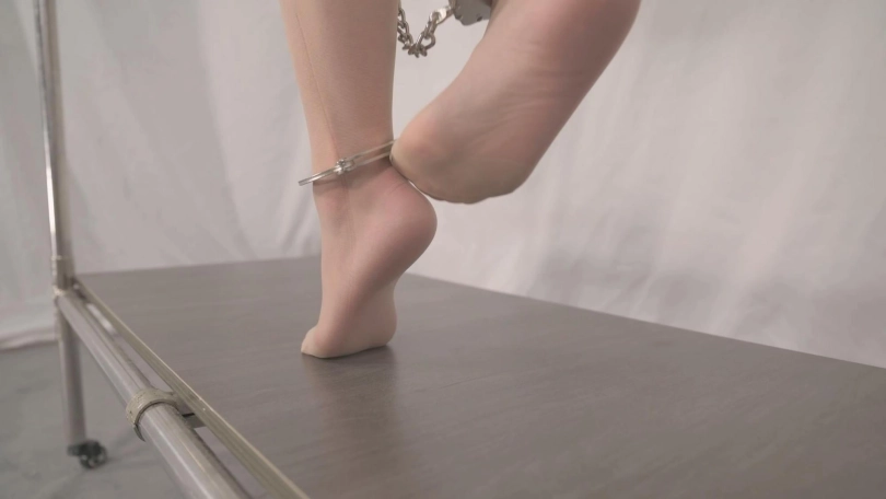 雪碧自己选了穿旗袍,前凸后翘36D的身材立马显现了出来,穿上丝袜高跟,更添性感御姐范,因此本片多采用近距离特写,整个过程充满美感。设计的这个钢管木马,有一条铁链穿过两腿之间锁到脚镣上,她穿着高跟鞋高度正好,还多了一条铁链增加痛苦,用最有震慑的电击器驱赶她来回走动,一开始没有太多压力,脱下她的高跟鞋后,她就只能高高的踮起脚被迫来回走动,感觉瞬间就来了,还差她那销魂的呻吟,那怎么行,立马把她双手铐住吊起,脚上用板铐的手铐铐上,痛的吱吖乱叫还带着哭腔,感觉也到了顶点!