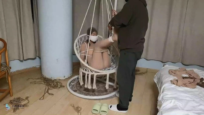 【JS】【欣妍】肉丝连体衣吊椅缚臭袜子塞嘴口罩TK恋足DD刺激GC丝袜套腿