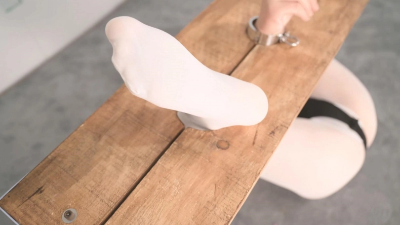 【撒琅制造】沐小雨木枷无内白丝木枷仰缚调教--体操服、口球、TK、SP、刺轮、戒尺、电击、筋膜枪