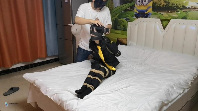 如果制服是一名侦探的骄傲,那么身着侦探服被束缚的⼥主现在⼀定是屈辱不堪的。⽼⿊怜⾹惜⽟,只想玩弄羞辱⼥主,却不想痛下杀⼿,遂帮其换上制服,再绑得动弹不得,随即再将其裤⼦拉到⼤腿处,漏出⿊丝包裹的臀部。⽼⿊玩弄了⼀会她的⿊丝脚掌,把⼿机放在远处,冷笑道:“如果⾃⼰解不开,别忘了打电话给你的男同事。”留下⼥主⼀⼈在屋内挣扎。