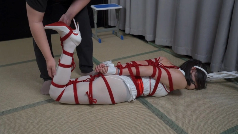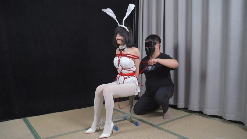 【象人】多层束缚 小0-白兔女郎+白丝白高跟,直臂蛇缚,双层全包丝袜,放置