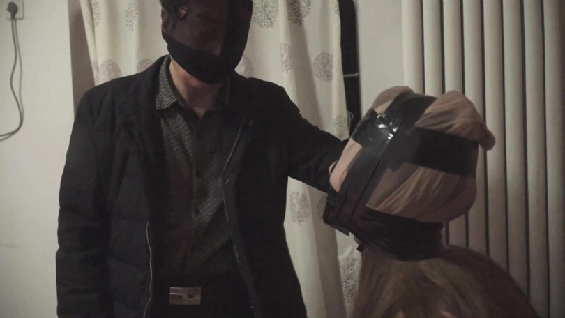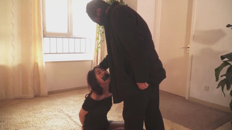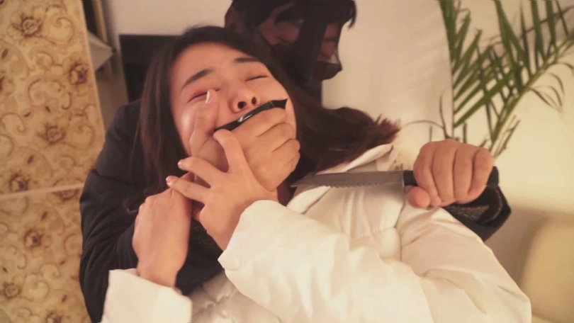 进屋后,张晴吓得几乎要昏过去,只见一个头上罩着丝袜的男人拿刀指着自己,自己的嘴巴还贴着胶布,也不敢