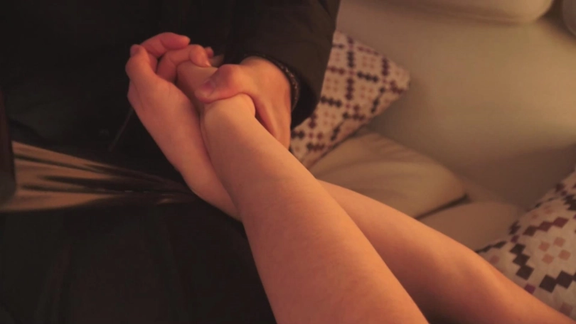 挣扎过程中,张晴从沙发上跌了下去,摔得生疼。