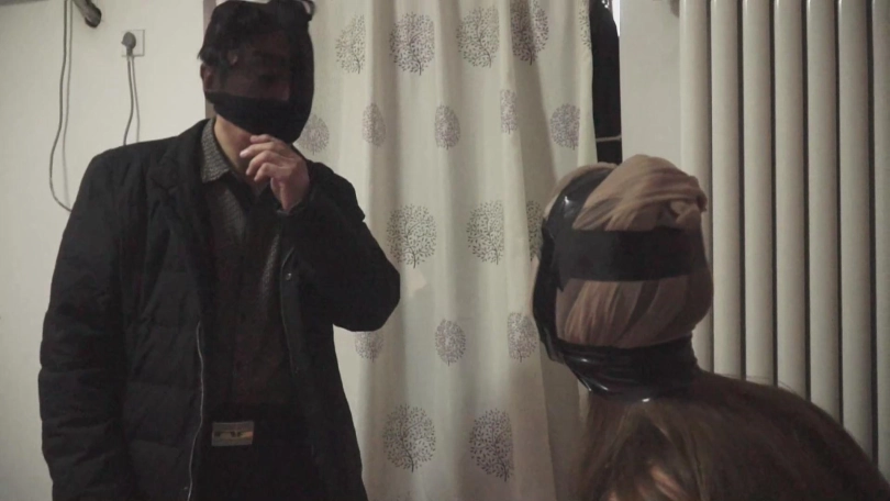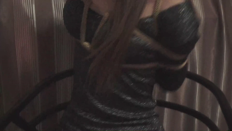 这个人被紧紧的用绳子拘束在一把椅子上,脸上被胶布紧紧的密封着,几乎只露出眼睛和鼻子。只看着她努力的
