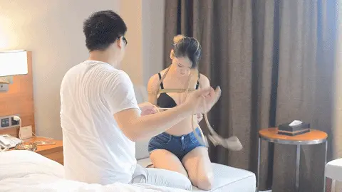 Samiul穿的是牛仔短裤与性感内衣,好身材一览无余,拍摄时的表情和姿势都很诱人,日式绑缚也非常精致美观